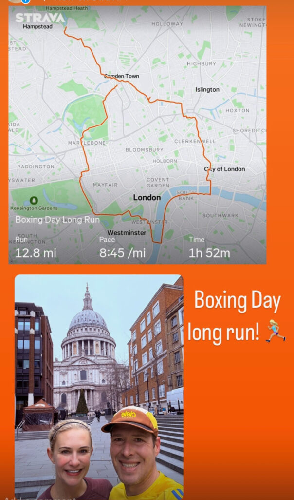 Friday: A regular work day, but things were pretty quiet. With my long run out of the way, I ran 6.5 miles with Ruth on a very foggy London morning. I did about 40 minutes of strength +core after work.