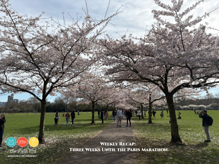 Saturday: 19 mile long run, mostly with friends to Battersea Park south of the Thames to see the cherry blossoms, and then on my own for the last bit.