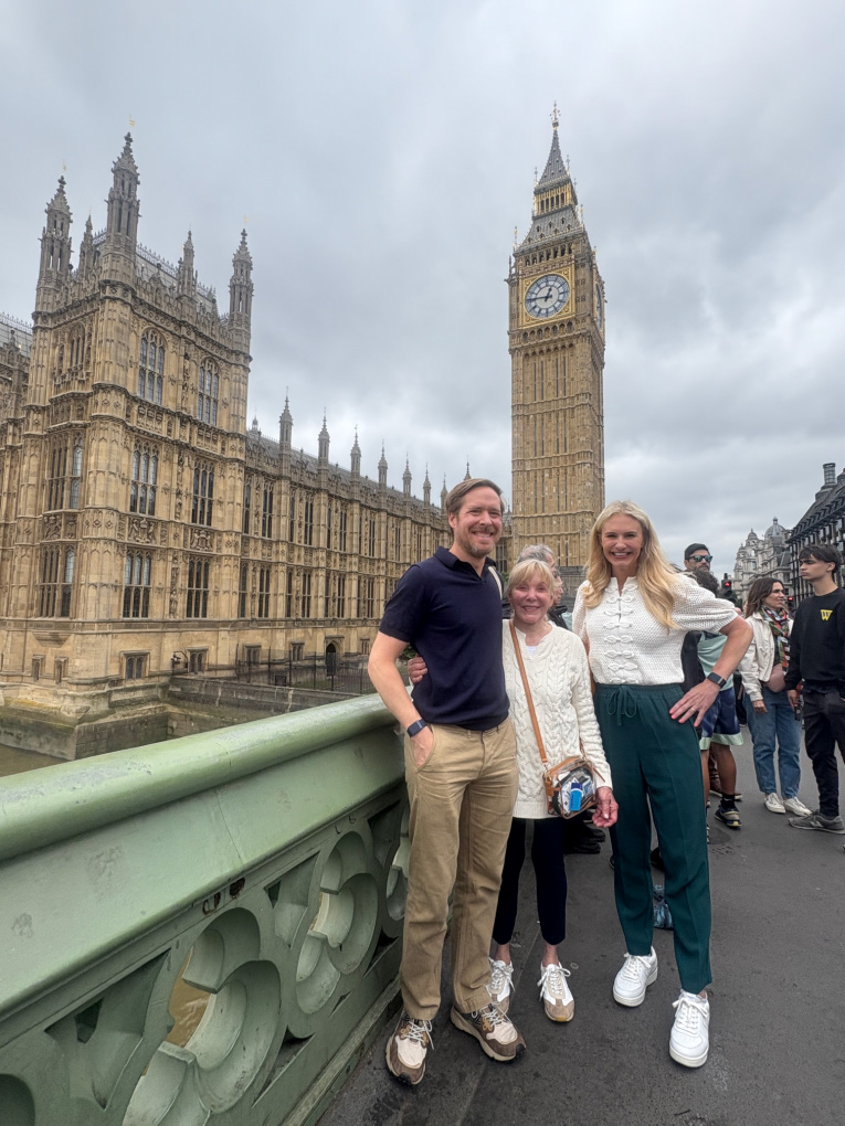 Thursday: I was up early to run with Dustin and Ruth, 6.5 miles. Then our day of touring began in East London where Dustin showed his mom where he works (parents love that!) before walking past the Tower of London to Tower Bridge. We got lucky and saw Tower Bridge being raised for “The Dixie Queen” boat; always a treat to see the drawbridge go up!